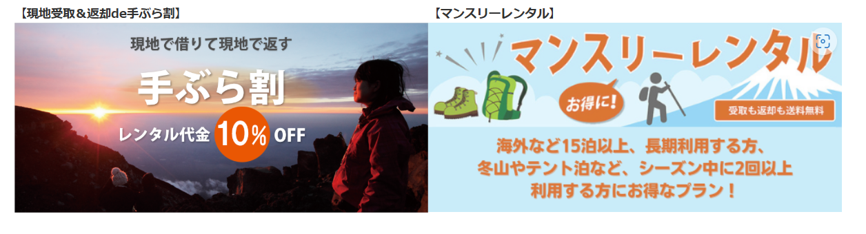 保管の手間がなく、必要なときだけ使えるのが便利です。子供のレンタルもあって助かりました。途中歩けないとダダをこねられましたが、子乗せキャリーのおかげでずいぶん登山が楽に出来ました。天候に恵まれず、途中引き返す事にはなりましたが、次回の楽しみが出来たと思って、また、出かけたいと思います。
