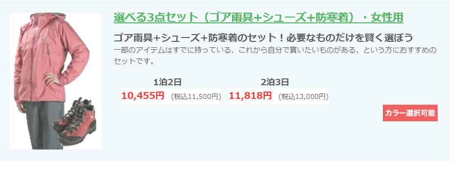 第3位 宿泊登山セット